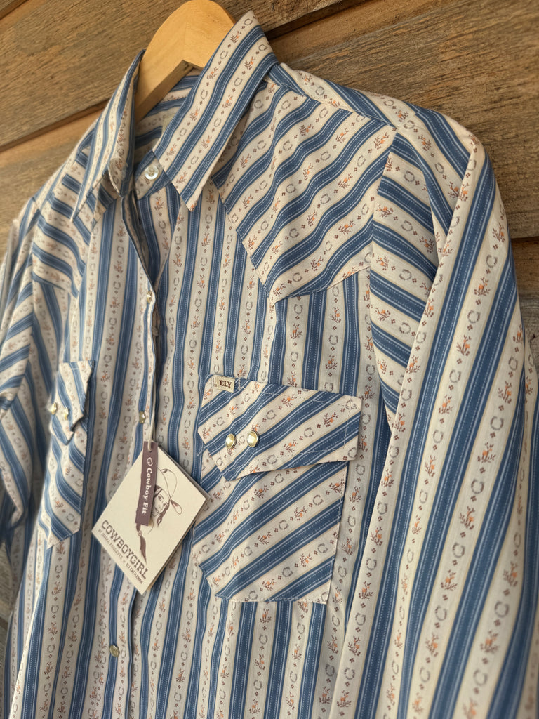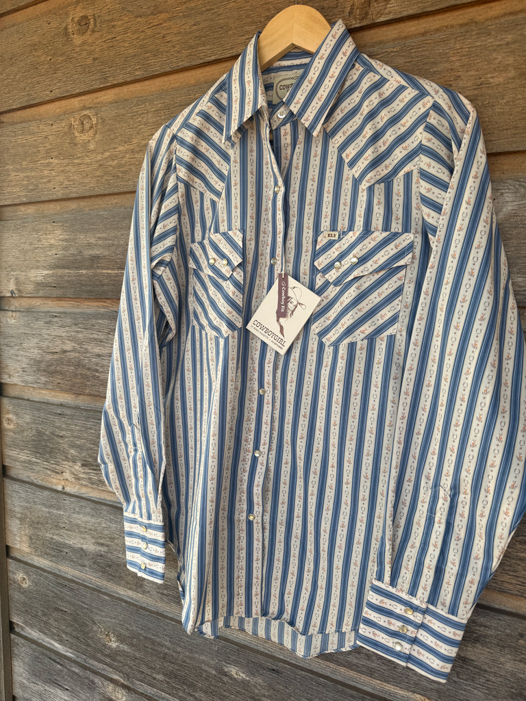 Cowboygirl Blue Lucky Horseshoe Pearl Snap
