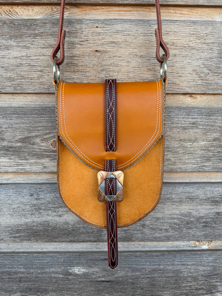 Made from heavy chap leather with a stitched latigo strap.